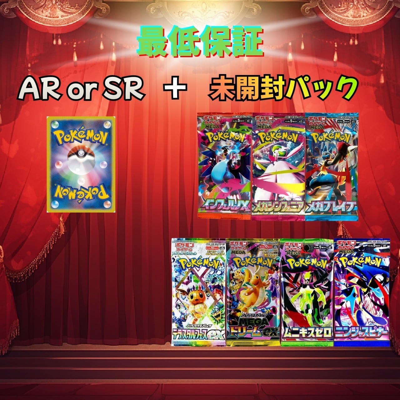 ●画像内の未開封1パック+シングルカード1枚(arもしくはsr以上)